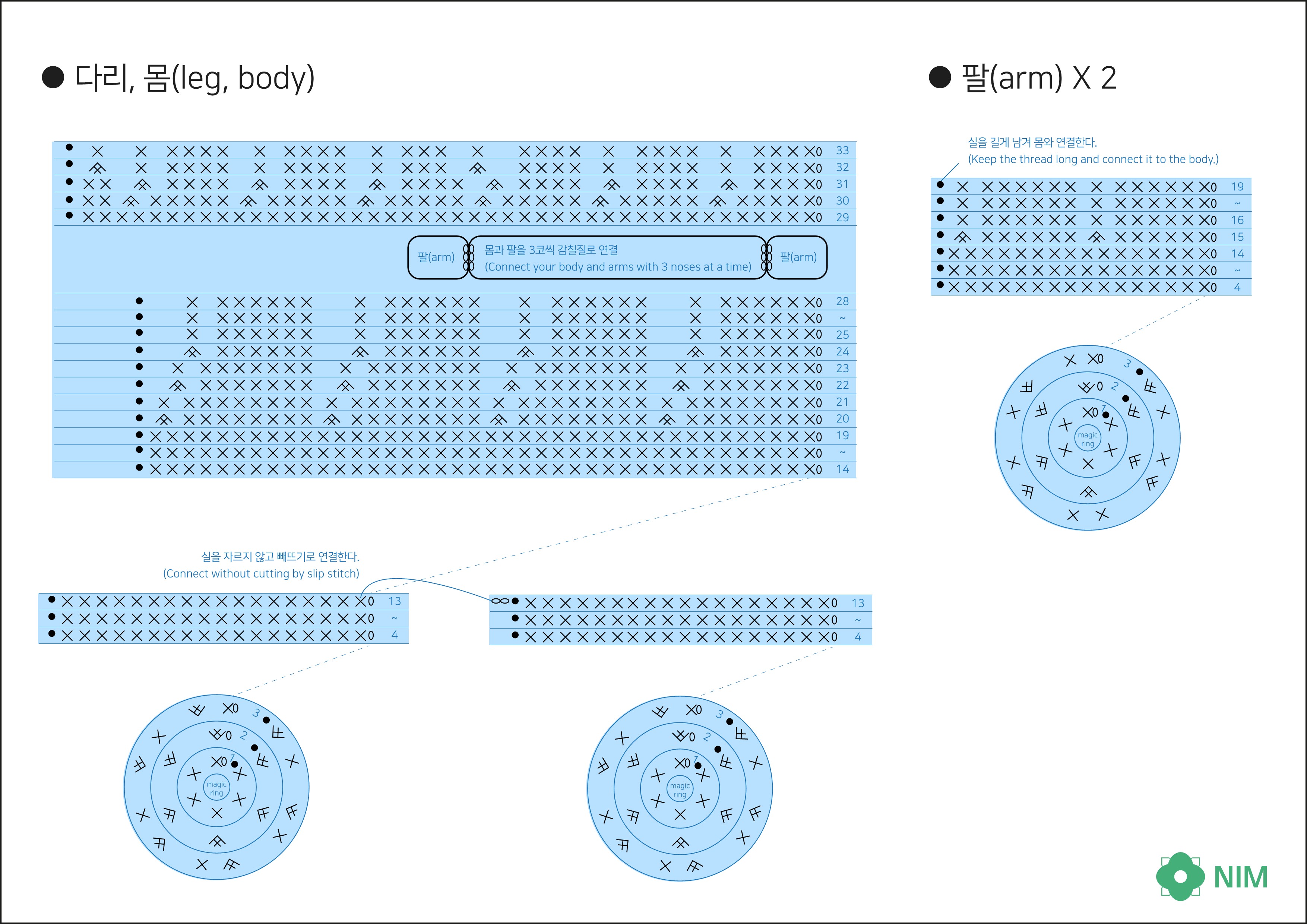 No.22 로블록스 레인보우 프렌즈 블루 인형 코바늘 무료 도안(Roblox Rainbow Friends blue doll crochet needle free pattern)