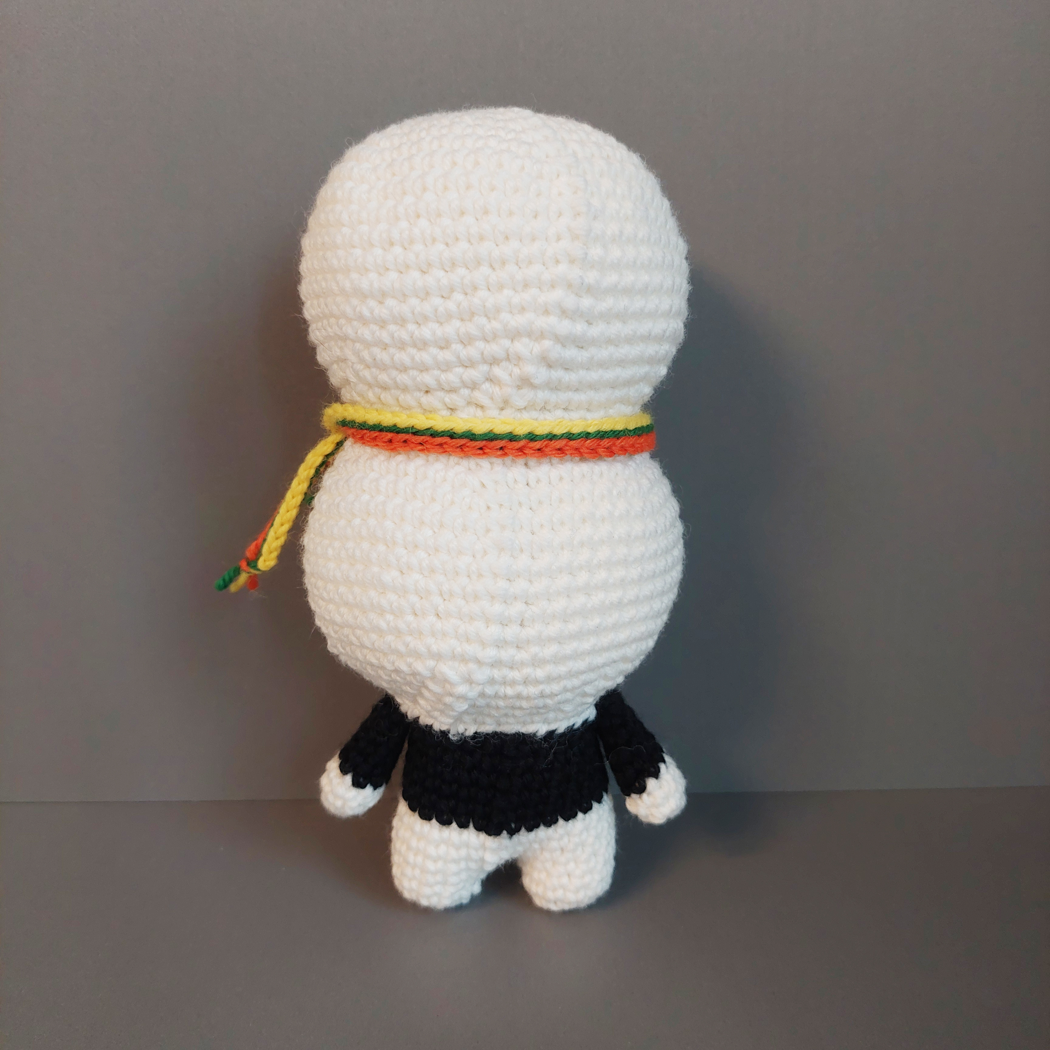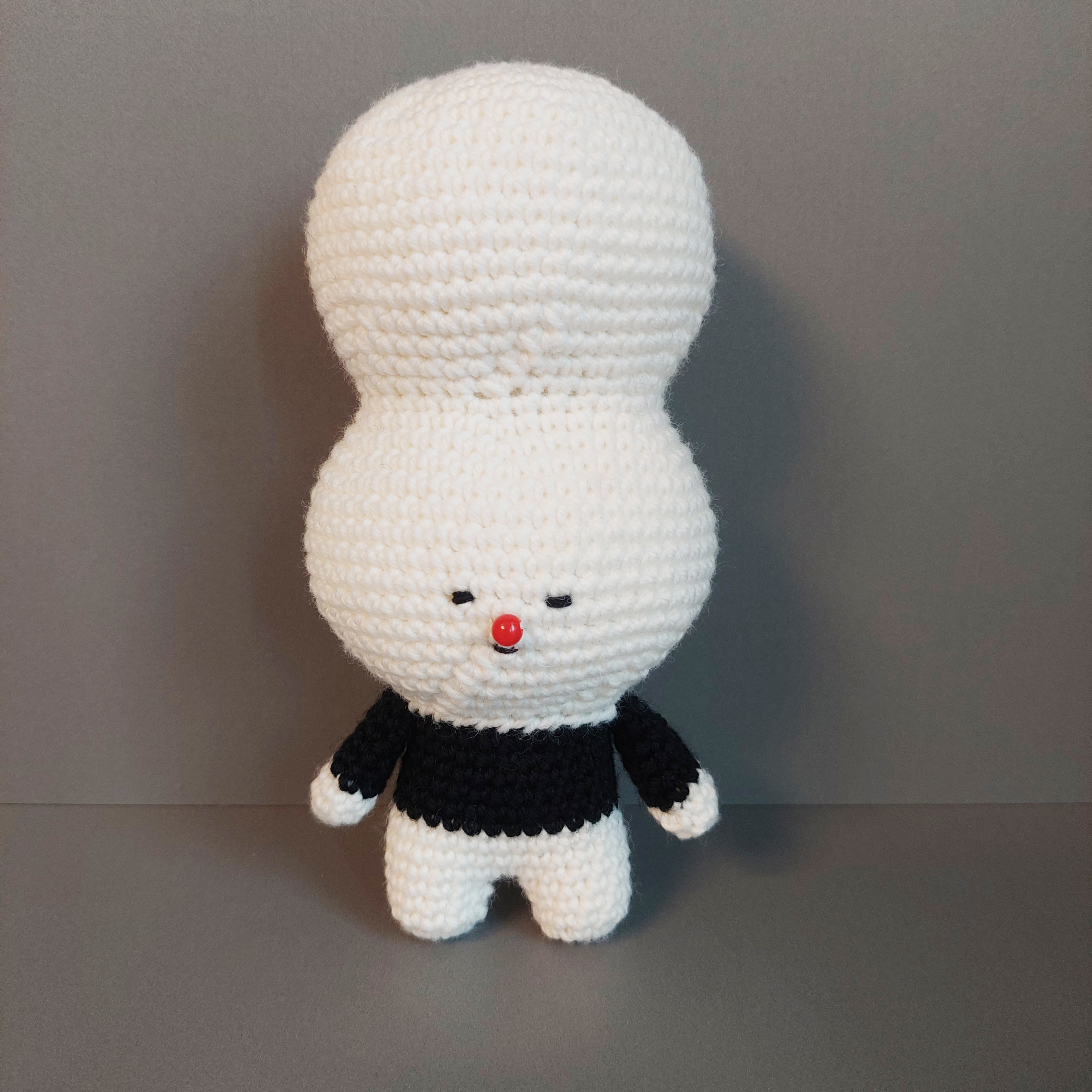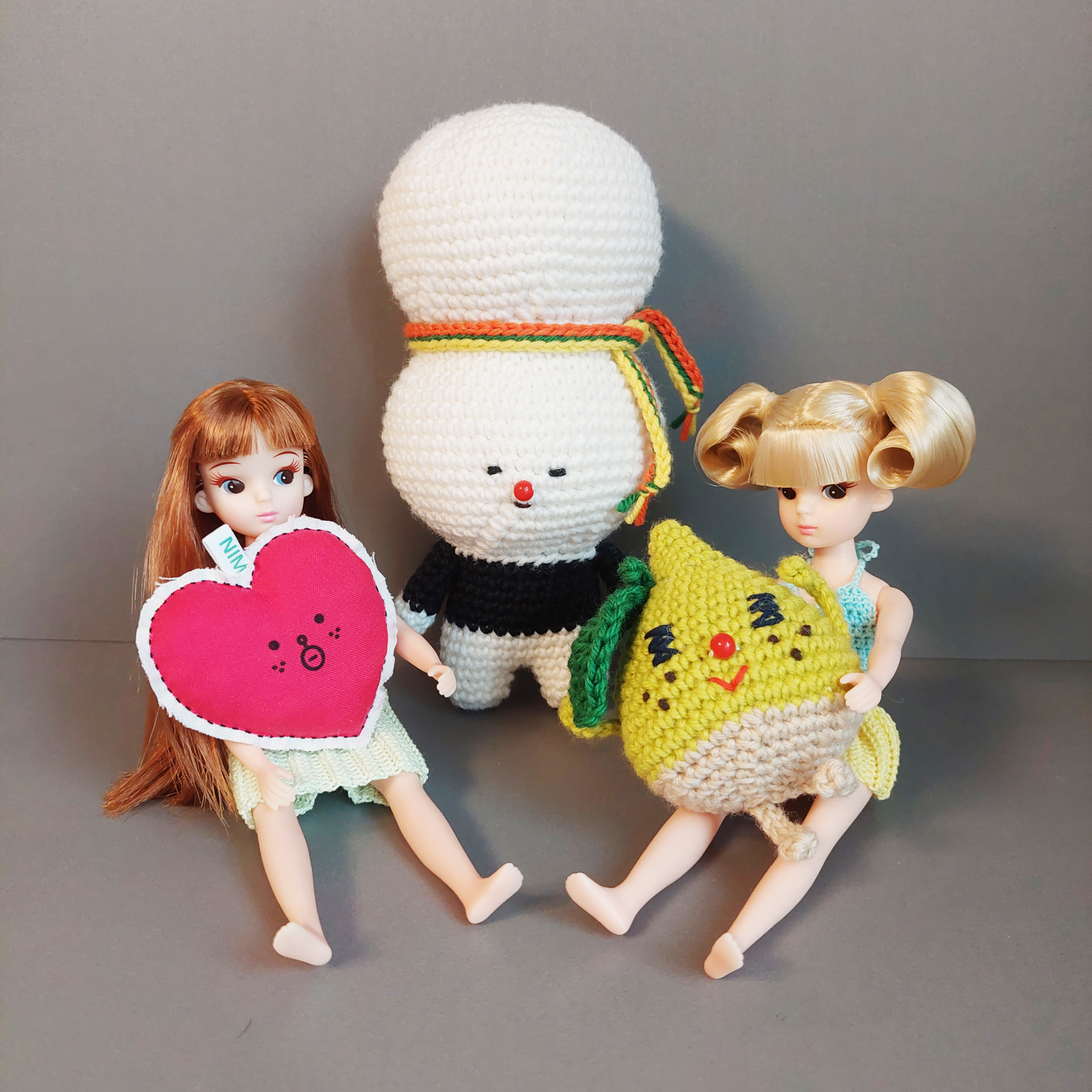 귀여운 조랭이 떡 얼굴을 하고 있는 코바늘 인형입니다.