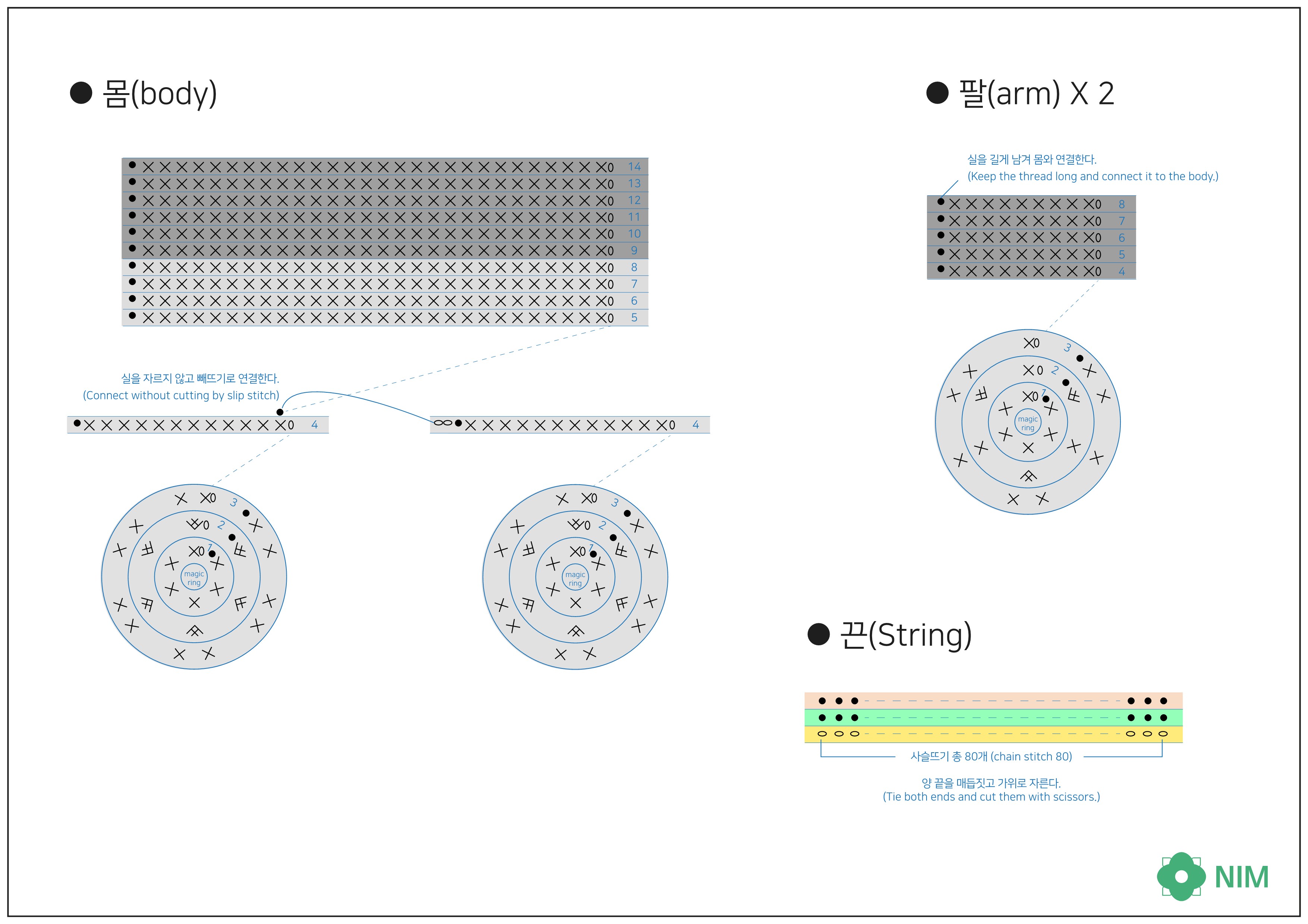 No.23 조랭이 떡 인형 코바늘 무료 도안(Joraengi rice cake doll crochet needle free pattern)