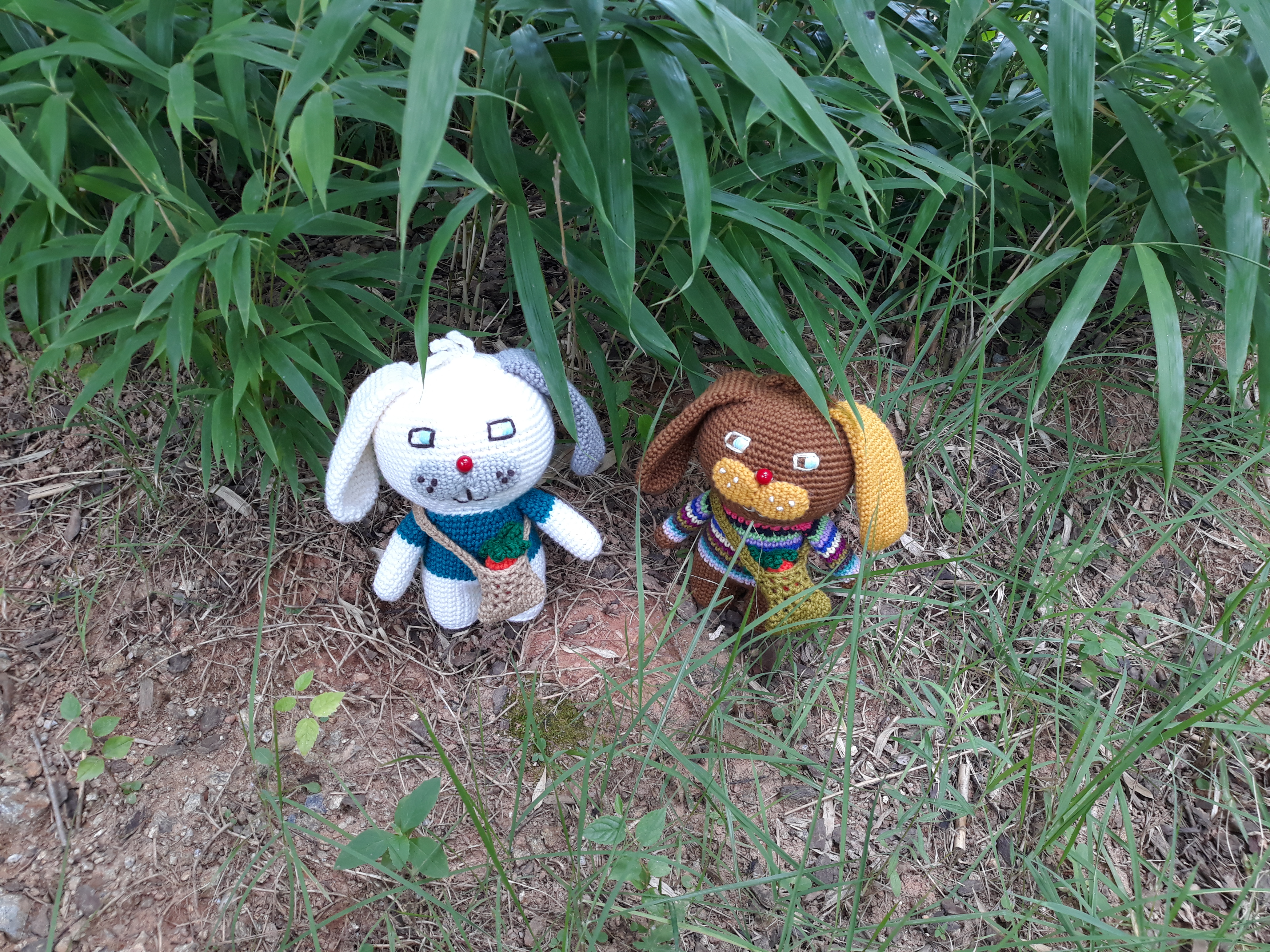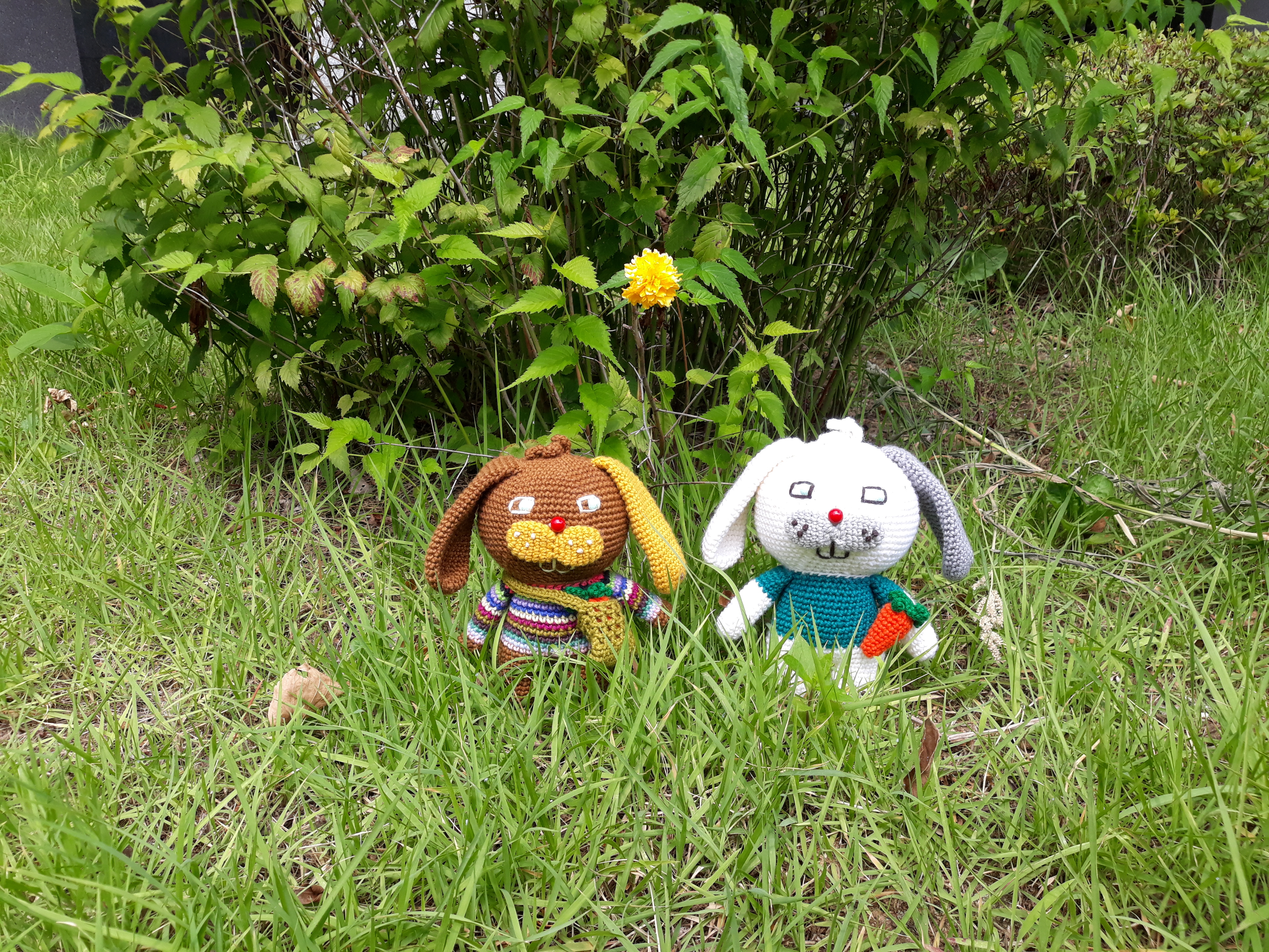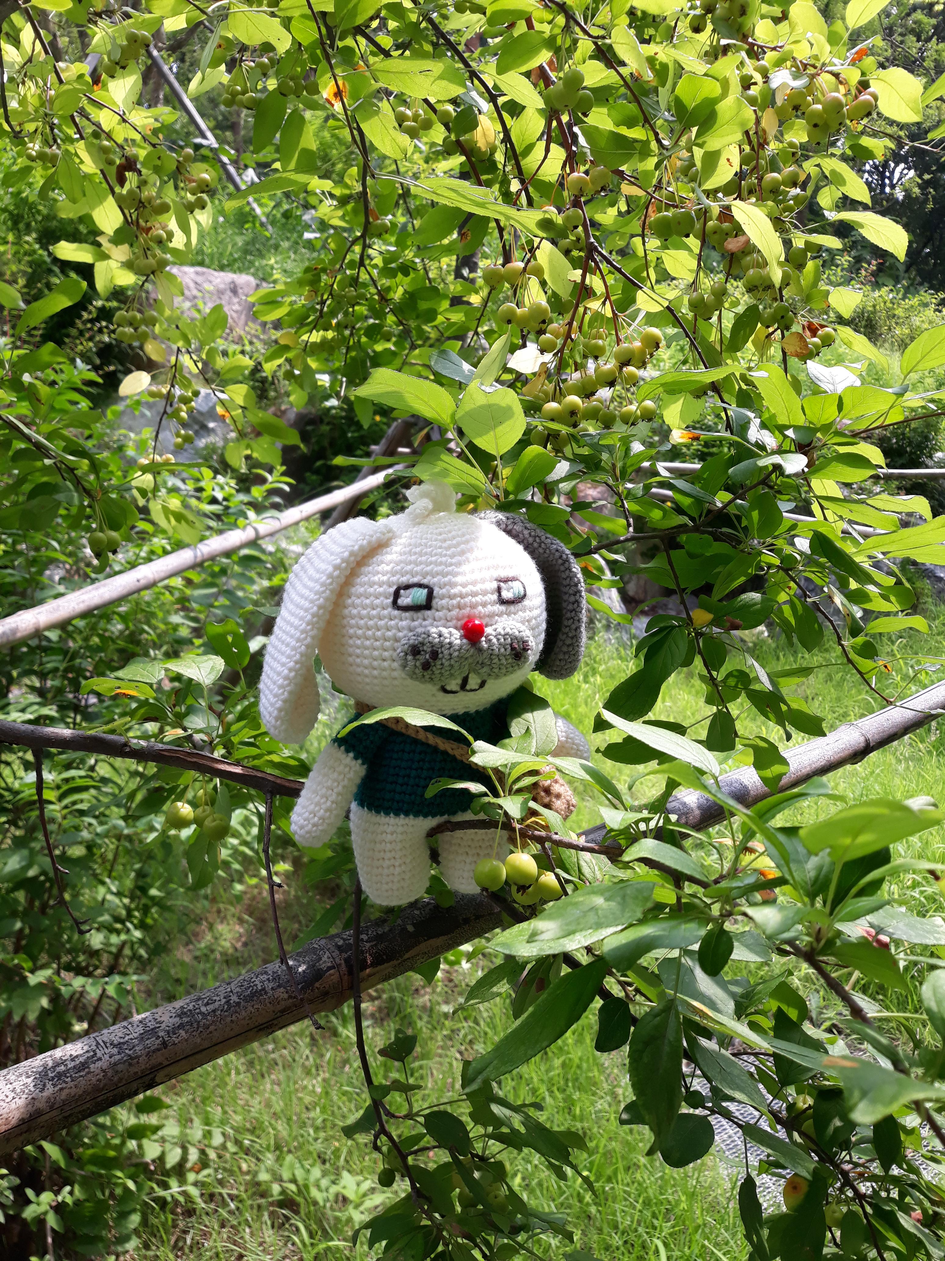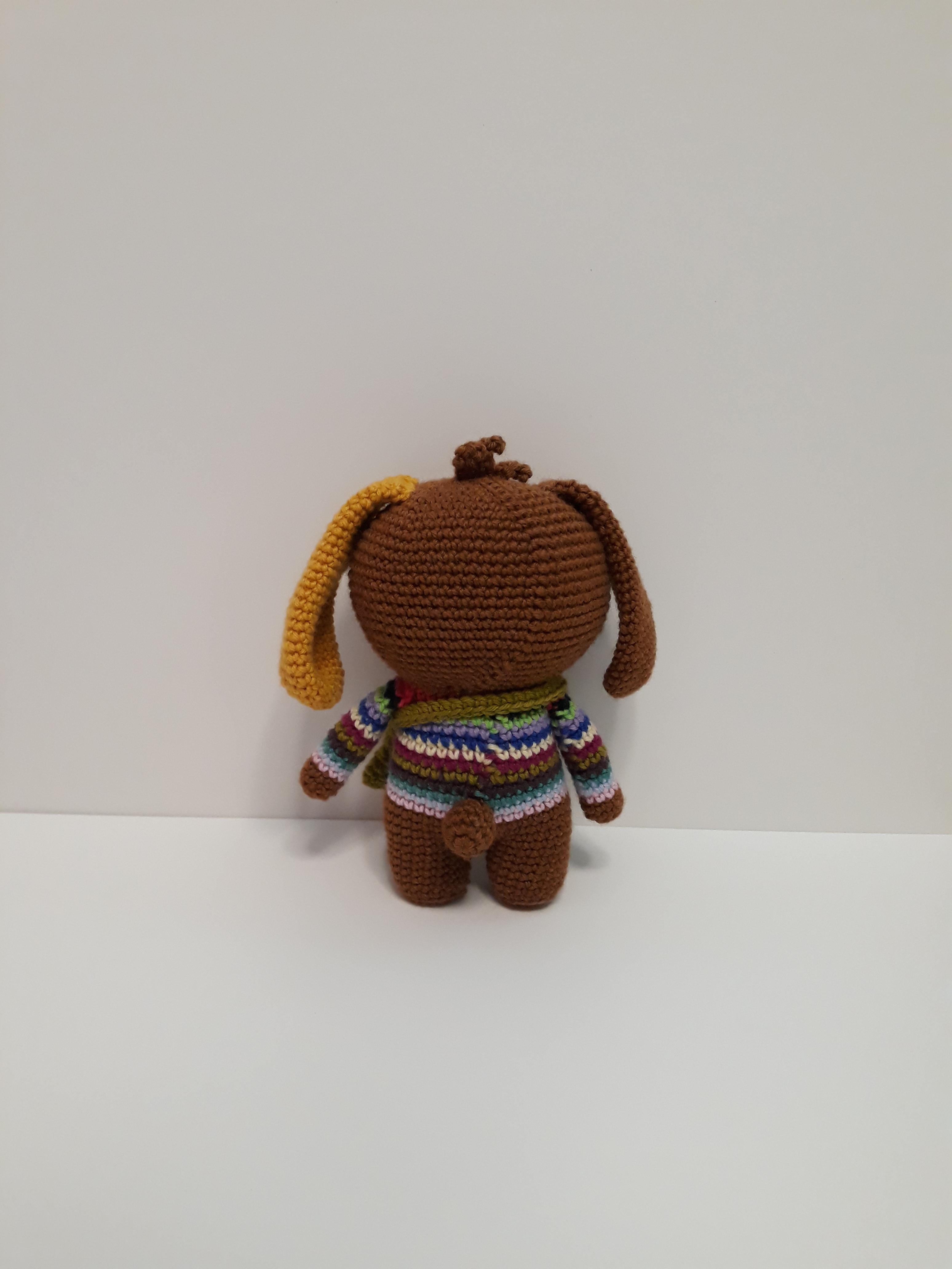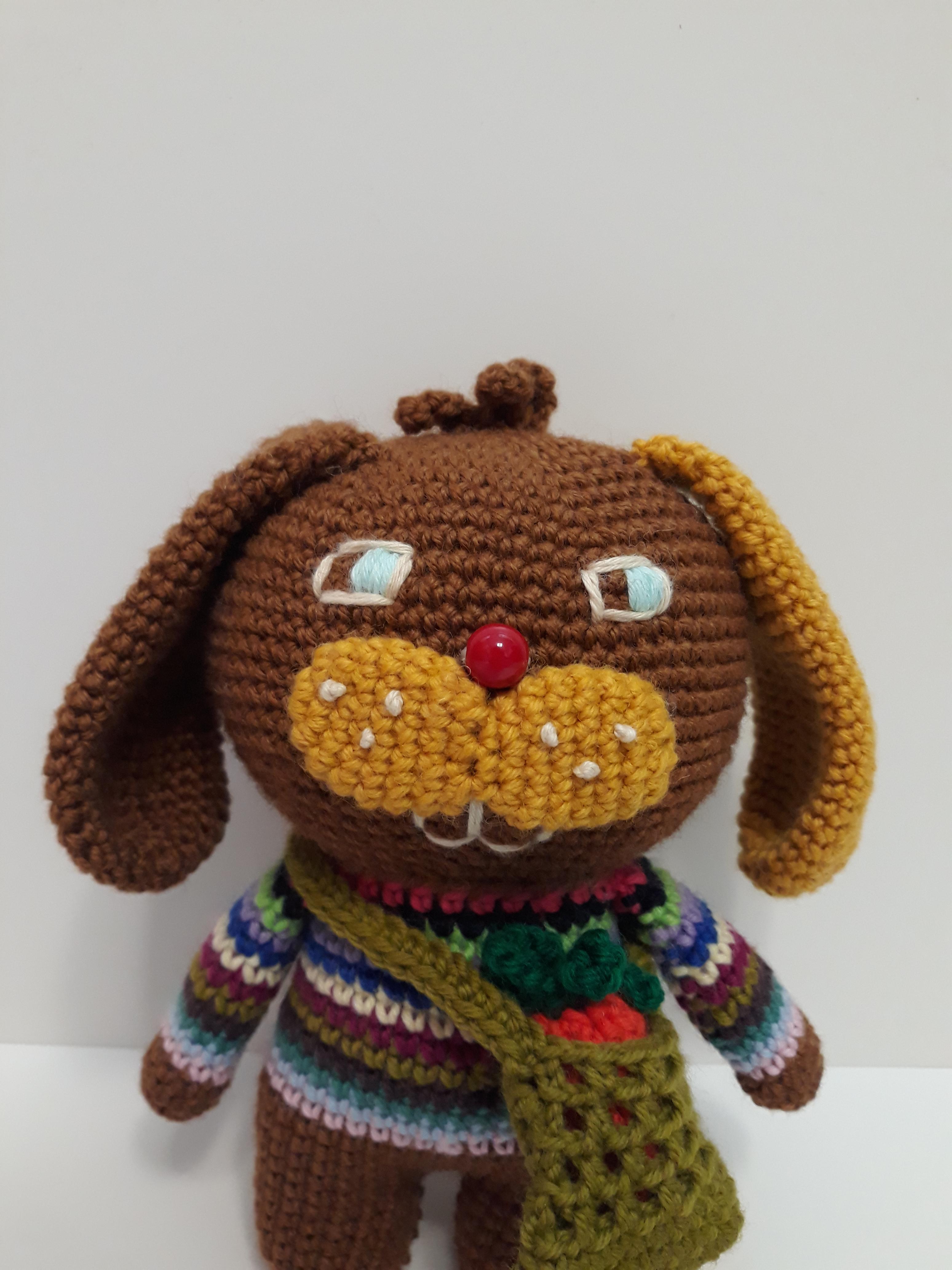 큰귀와 커다란 앞니가 매력적인 토끼 코바늘 인형이예요.