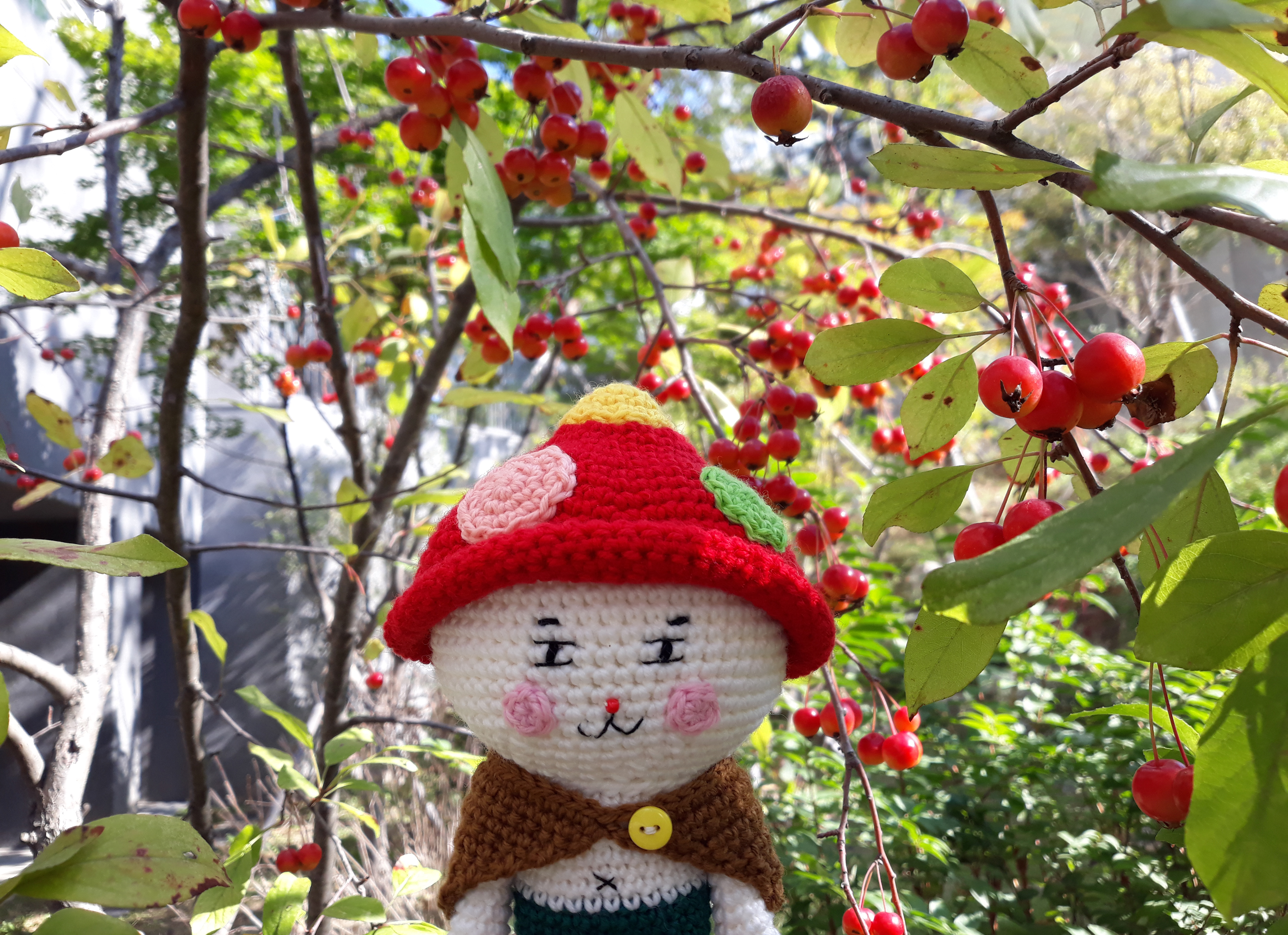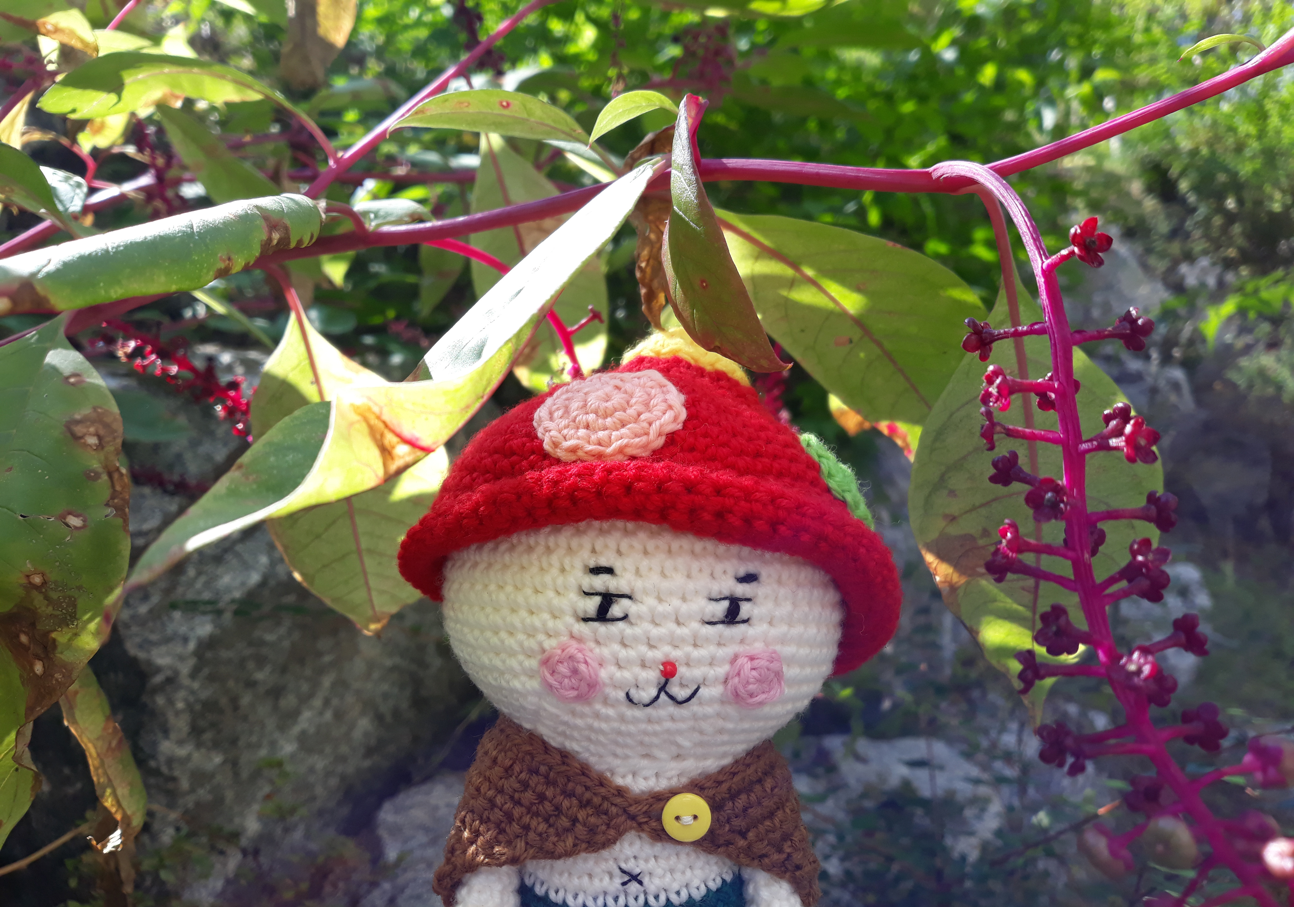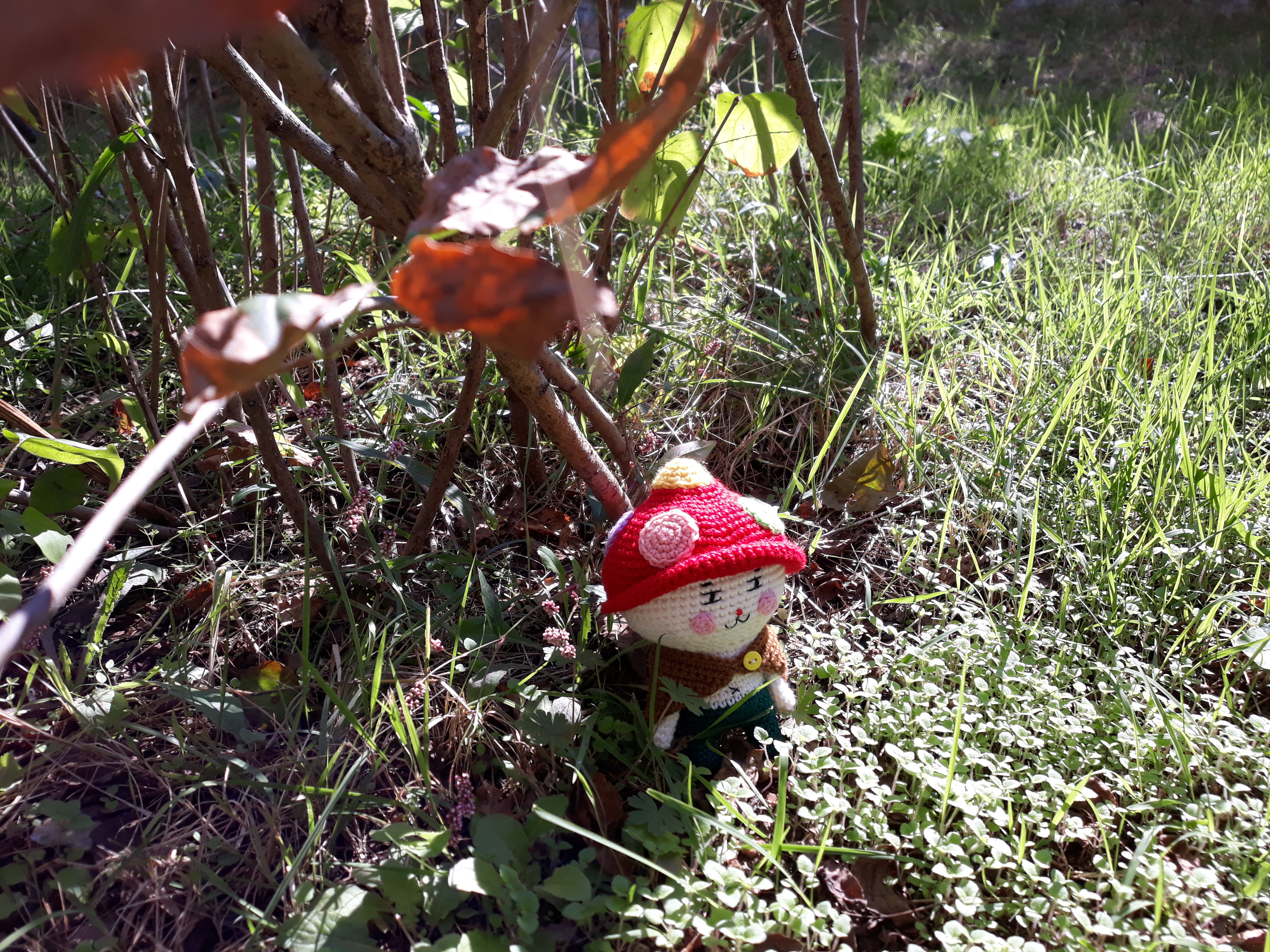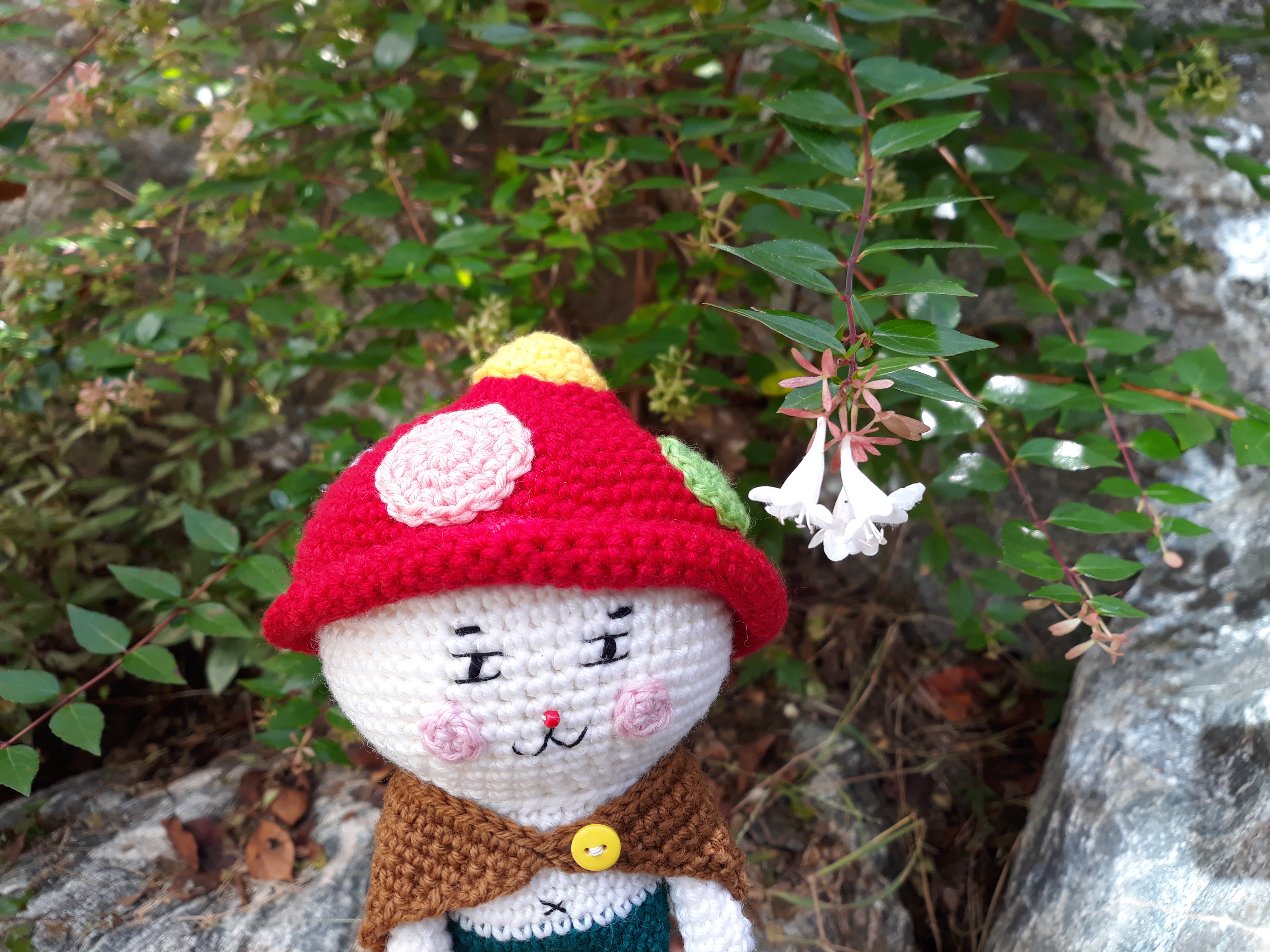 빨간색 버섯모자와 갈색 망토를 걸치고 있는 인형이에요.