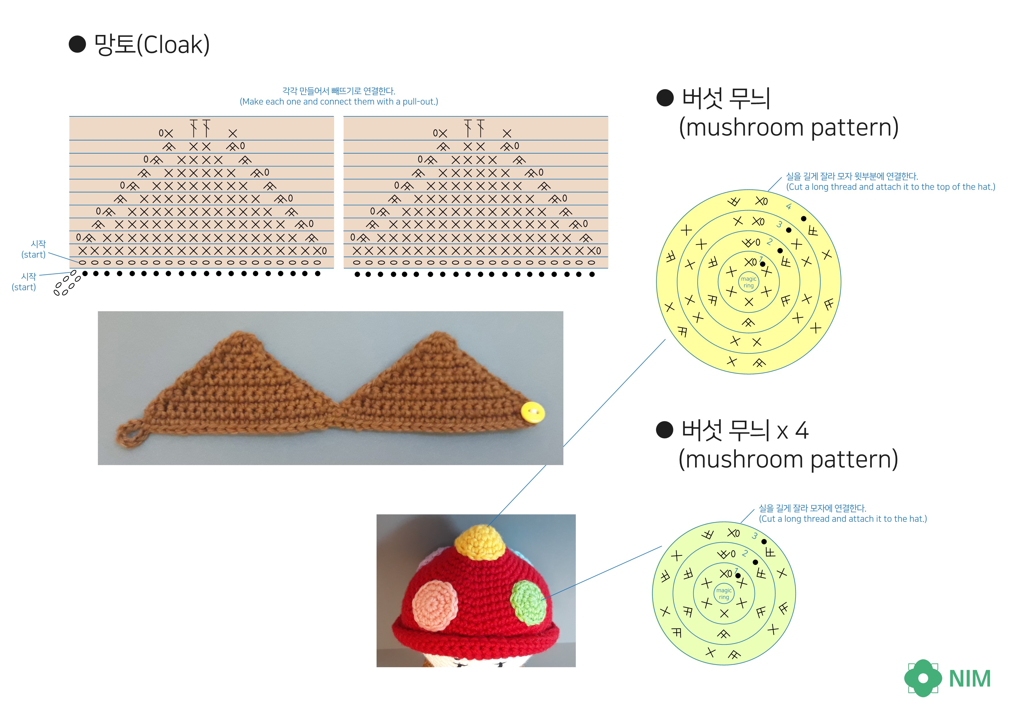 No.9 버섯모자 소년 토리 인형 코바늘 무료 도안(Amigurumi mushroom hat boy doll crochet needle free pattern)